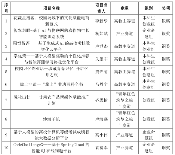 7月23日至25日,中国国际大学生创新大赛(2025)甘肃省分赛决赛在兰州城市学院校本部成功举办。我校参赛项目斩获银奖2项、铜奖8项。党委委员、副校长张焱及教务处(创新创业学院)相关负责人代表学校参加了闭幕式现场活动。
