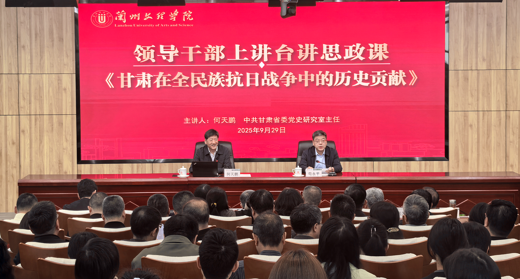 按照中共甘肃省委教育工作领导小组关于领导干部上讲台讲思政课的统一部署,9月29日,中共甘肃省委党史研究室主任何天鹏应邀来我校讲授专题思政课。校党委书记苟永平主持。在家校领导、机关各处室和各二级学院主要负责人、马克思主义学院无课教师、各学院学生代表160余人参加。