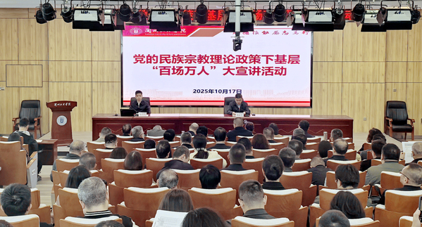 10月17日下午,党的民族宗教理论政策下基层“百场万人”大宣讲活动走进我校,省委统战部副部长杜怀明作宣讲报告。校党委书记苟永平主持报告会。在家的校领导班子成员、全校中层干部、辅导员、班主任、马克思主义学院全体教师共180余人参加。