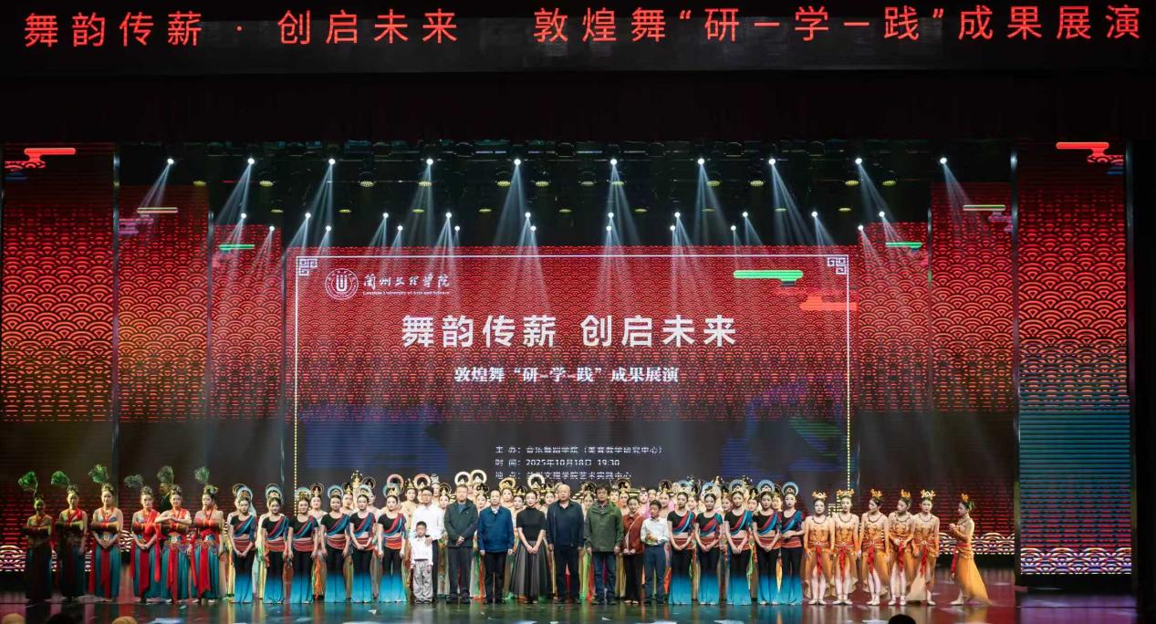 10月18日晚,我校音乐舞蹈学院"舞韵传薪·创启未来"敦煌舞“研——学——践”教学成果展演在艺术实践中心举行。本次展演是《敦煌舞基训》国家级一流课程建设成果的集中展示,也是敦煌舞舞台艺术实践研究中心承担的2025年甘肃省高校大学生就业创业能力提升工程项目的重要成果,旨在深耕敦煌文化传承和敦煌舞人才培养摸索创新,进一步凝练舞蹈专业特色,提升人才培养质量,为甘肃地方经济发展培养更多更好的舞蹈表演艺术人才。