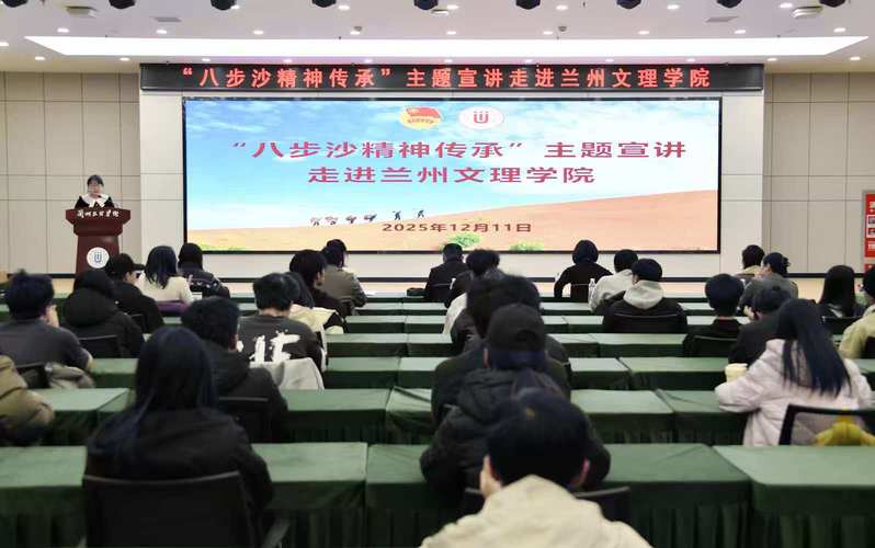 12月11日下午,“八步沙精神传承”主题宣讲活动在文昌楼302多功能厅举行。甘肃文旅产业集团人力资源部副部长沈同出席活动,校团委全体人员、各学院分团委负责人及学生代表参加,共同接受治沙精神教育。
