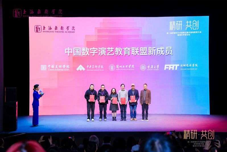 12月16日,“第二届数智时代中国舞台美术高等教育大会暨青年学者论坛”在上海戏剧学院举行。我校在大会开幕式上作为新成员单位正式加入中国数字演艺教育联盟,校长王顶明及学院相关教师代表一同参会,美术与设计学院院长吴晓玲代表学校接受联盟成员证书。