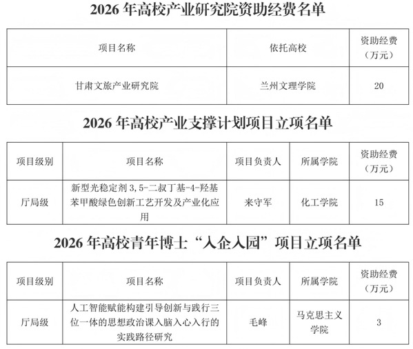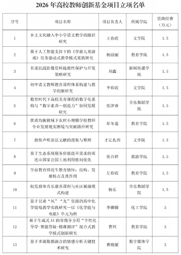 与此同时,我校2025获批的“甘肃文旅产业研究院”在今年资助100万元的基础上,2026年继续资助20万元。