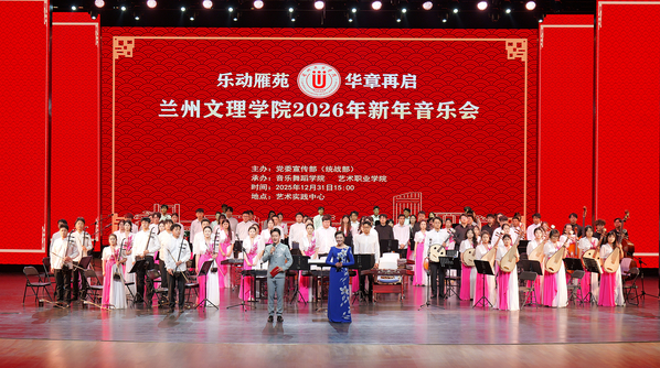 12月31日下午,“乐动雁苑 华章再启”兰州文理学院2026年新年音乐会在艺术实践中心举行。学校领导班子成员、离退休教师代表、师生代表及各民主党派、统战团体代表等600余人共同观看演出。